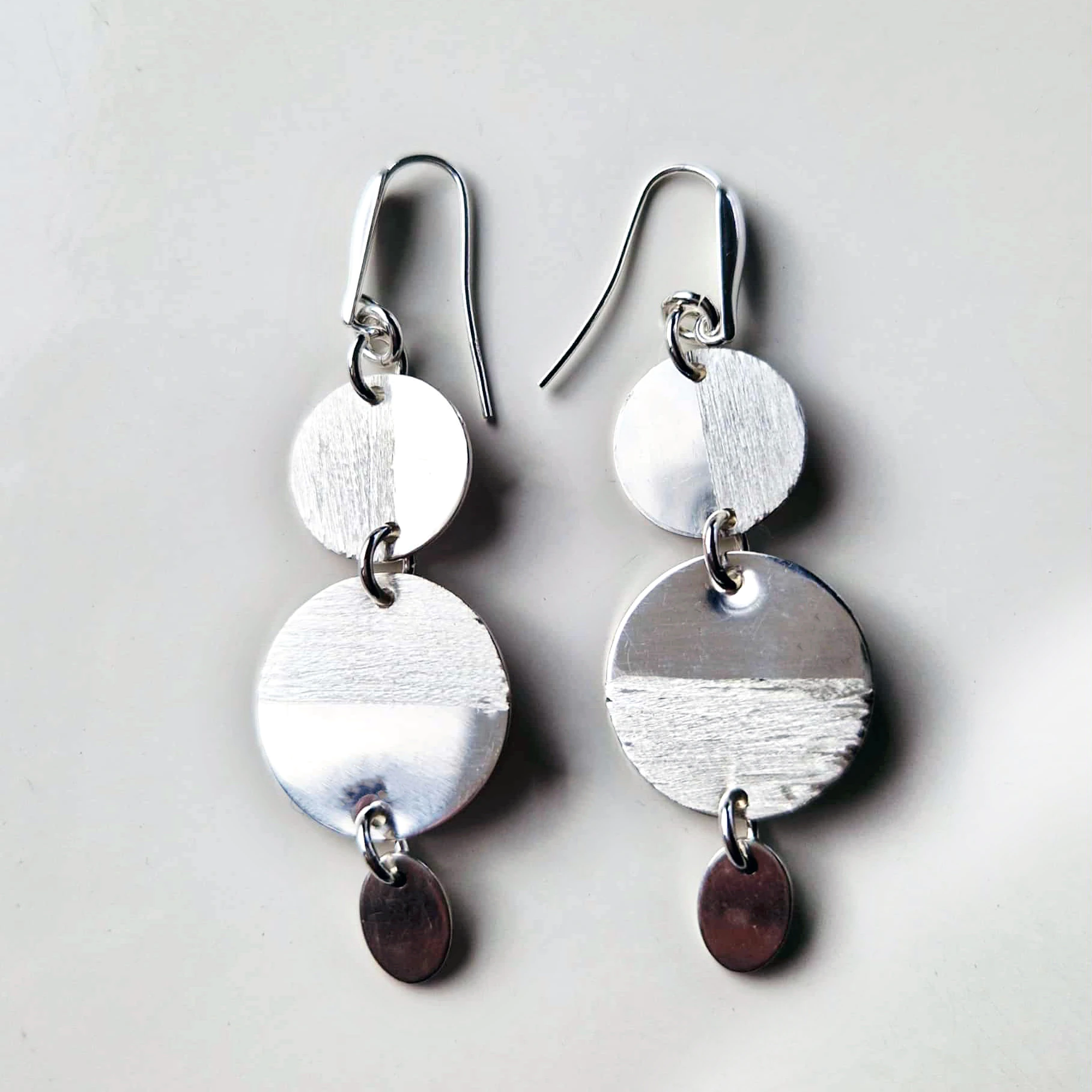 Inspirées du mouvement des astres, les boucles d’oreilles Constellation associent trois disques d’argent 925 brossés, reliés avec équilibre et légèreté.