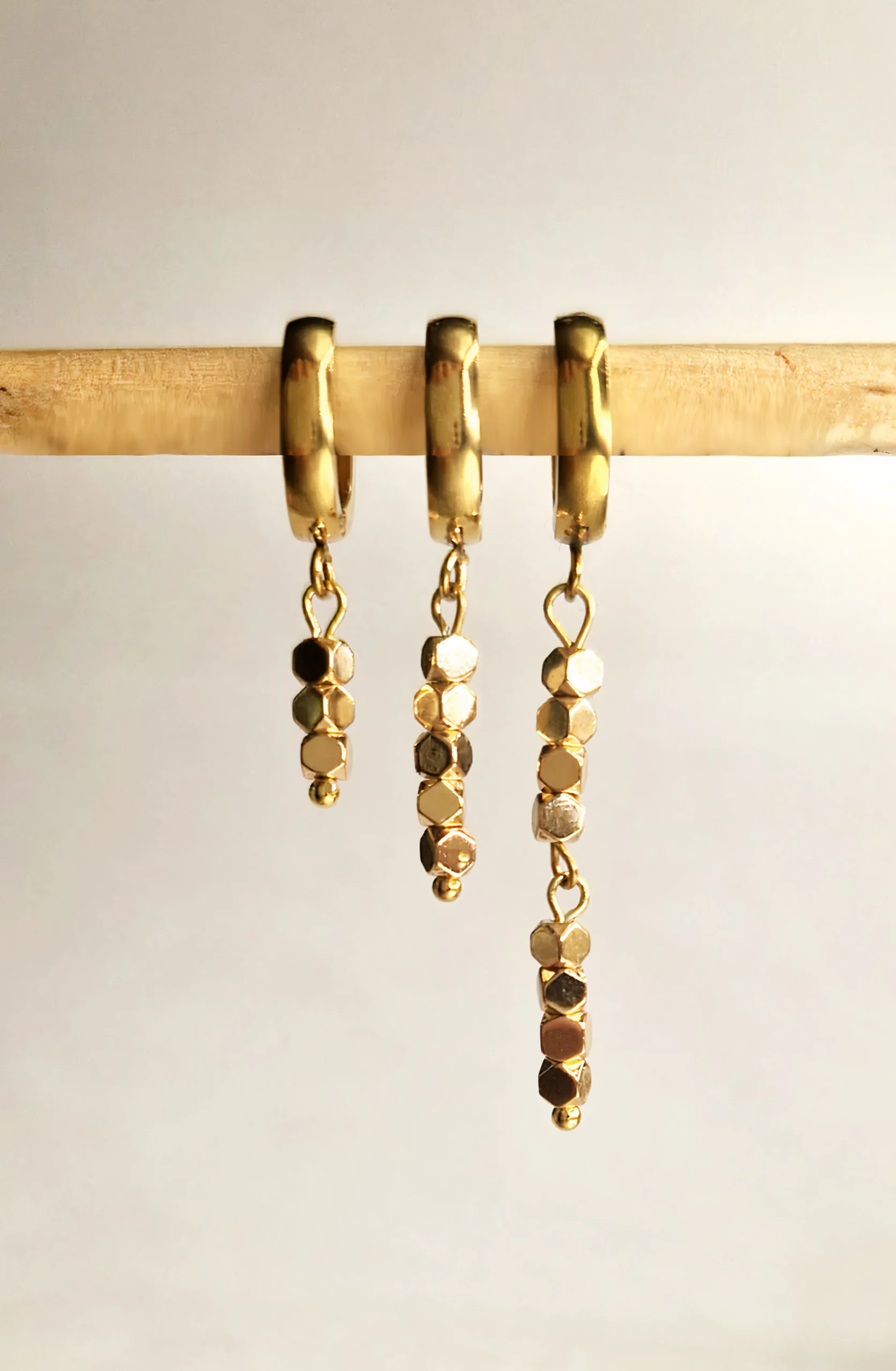 Ce modèle incarne un luxe minimaliste. La structure géométrique des perles s’unit à la brillance de l’acier précieux pour un rendu « total gold » à la fois moderne et intemporel. C’est la pièce idéale pour illuminer votre teint avec une élégance discrète mais affirmée.